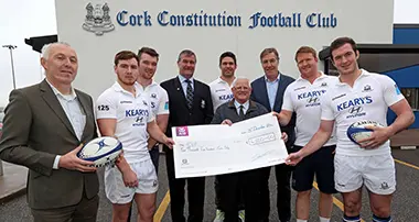 Accepting the €4500 donation Brendan Dempsey SVP Regional Vice President thanked Jerry Holland, Donal Lenihan and Cork Constitution for their generous support of the Society The money donated will be used to provide coal and fuel to many families and individuals in need throughout Cork.