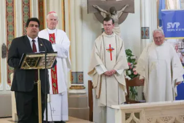 Brendan added: “As well as meeting volunteers in Newry, we took the opportunity to celebrate his first visit with a Mass in St Malachy’s in Alfred Street, Belfast. Following Mass, Renato presented 23 SVP members from across Northern Ireland with long-service medals, with 20 volunteers receiving 25 years’ service medals and three volunteers being presented with 50 years’ service medals.