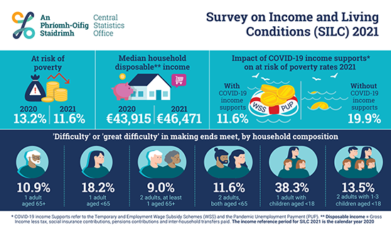 SVP Head of Social Justice, Dr. Tricia Keilthy said; “The results published today by the CSO shows the power of a strong safety net in protecting people from poverty. The strong and quick response from Government in the initial phases of the pandemic prevented many households for entering poverty. However, for those already struggling and on inadequate income supports, we see a persistence of hardship for some groups and a worsening situation on a number of indicators. The results mirror the experience of SVP during the pandemic where those in poverty and not eligible for Covid-19 supports struggled with an increase in food and energy poverty during lockdowns and school closures.”
